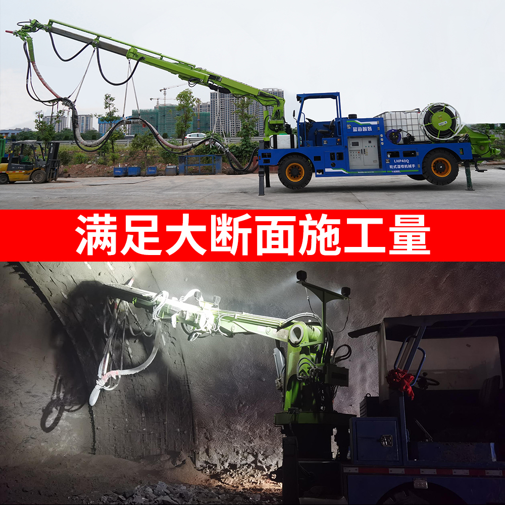 车载 轮式湿喷机 - 湿喷机械手适用于隧道、水利、市政、道路桥梁等工程的全断面、半断面和多阶梯喷浆支护作业。